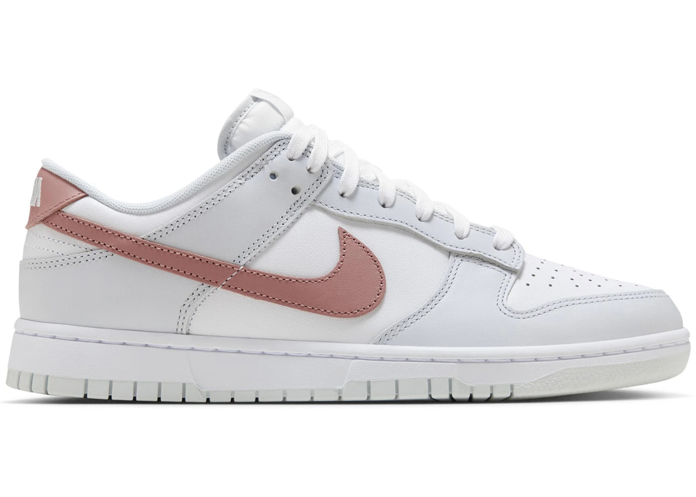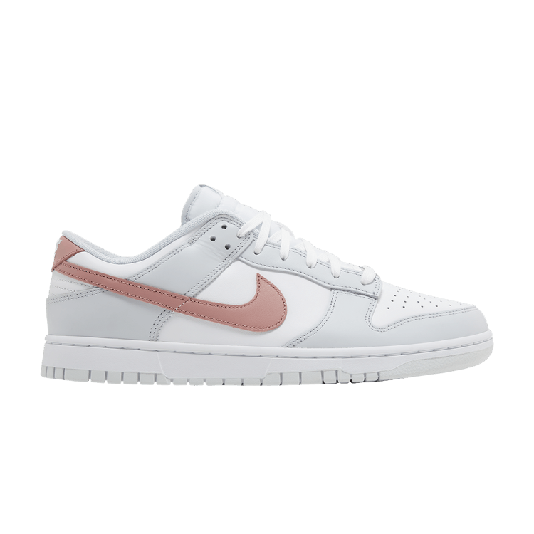 The Nike Dunk Low Retro Red Stardust Pure Platinum features a white leather upper with platinum cross-straps and Stardust Red accents on the heel lip and Swoosh. It includes a...