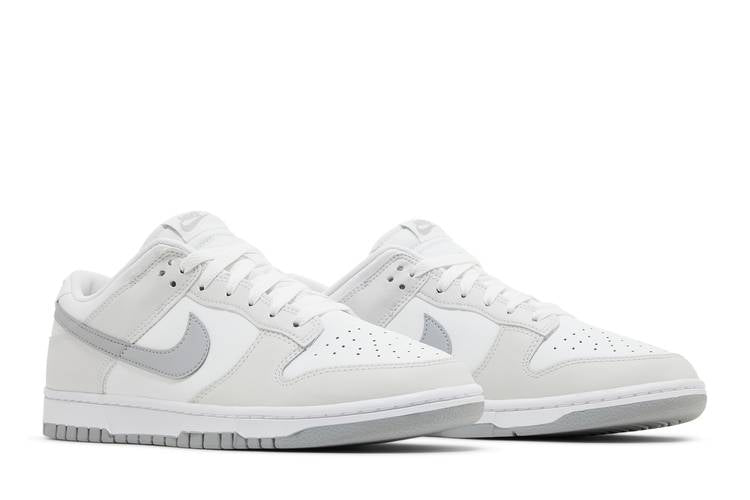 The Nike Dunk Low 'Summit White Light Smoke Grey' features an all-leather upper in chalk white with pale grey overlays at the forefoot and heel. Complemented by a grey Swoosh...
