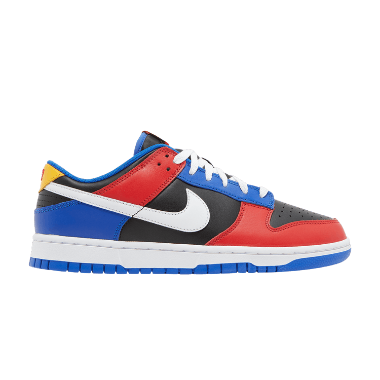 The Nike Dunk Low Tennessee State University features a black leather upper with white, blue, yellow, and red accents matching the varsity colors. The heel, mudguard, and quarter panels display...