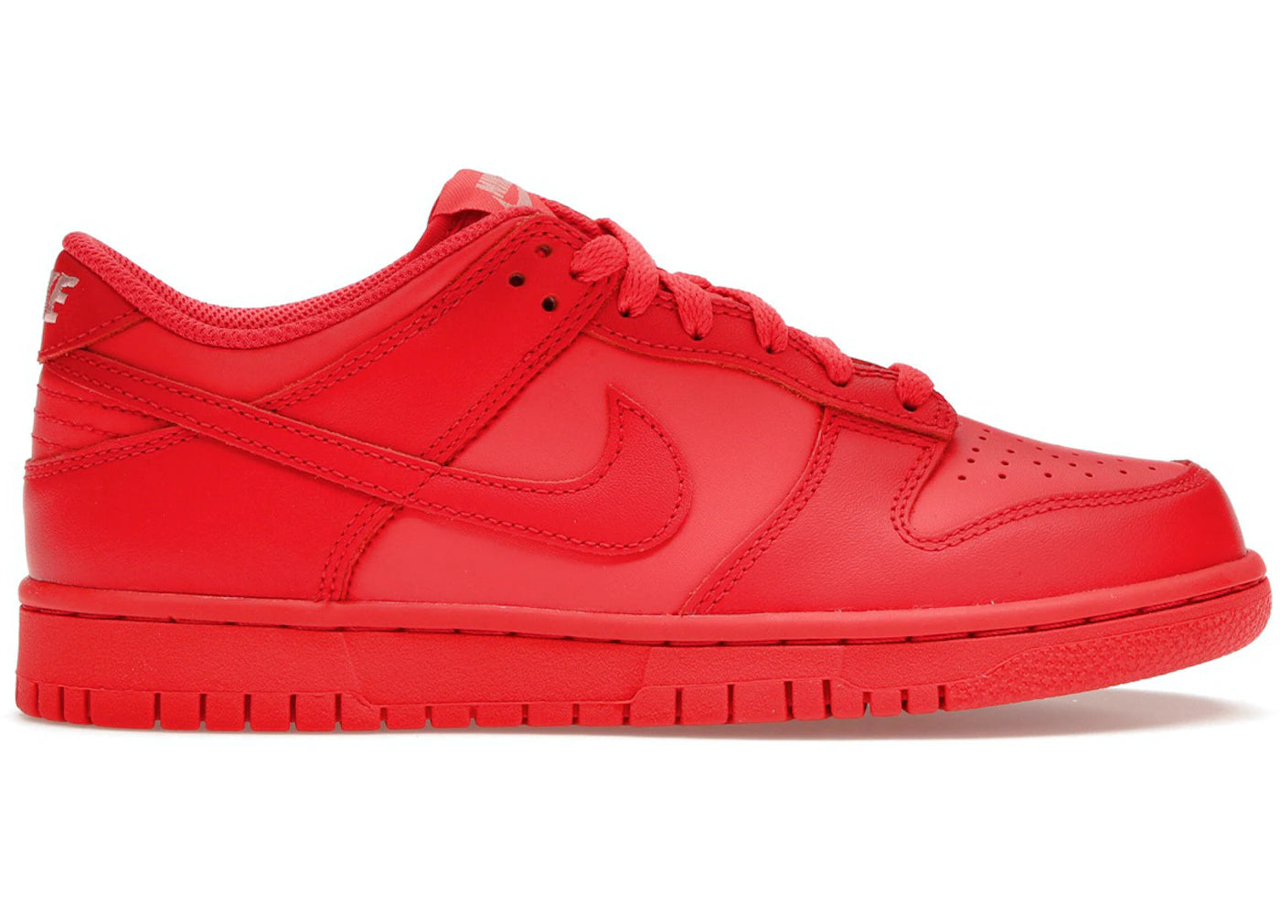 The Nike Dunk Low Track Red (GS) features a full Track Red leather upper with tonal Swoosh branding on both sides. The midsole, outsole, and flat laces also match the...