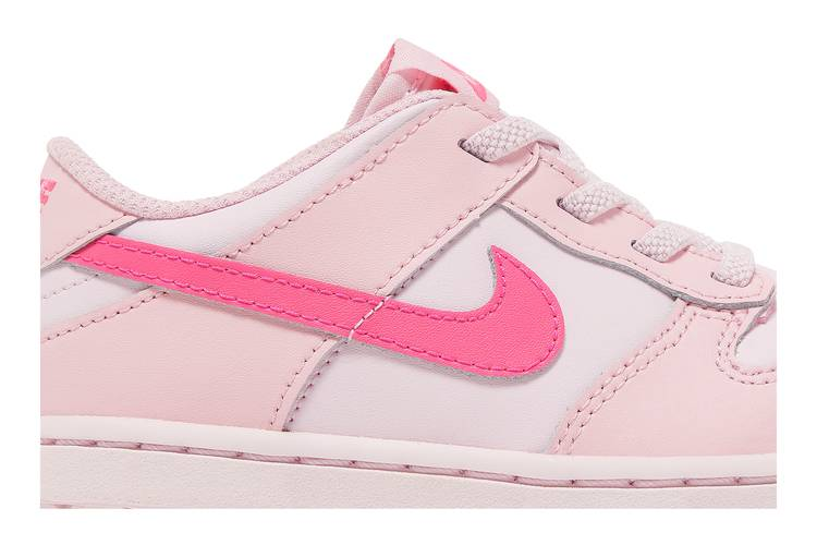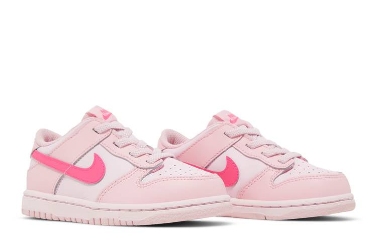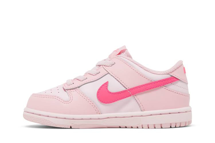 The Nike Dunk Low Triple Pink (TD) features a combination of dark and light pink leather upper with a pink Nike Swoosh. The perforated toe box and heel counter are...