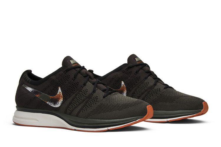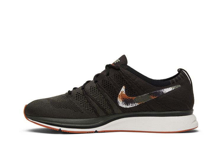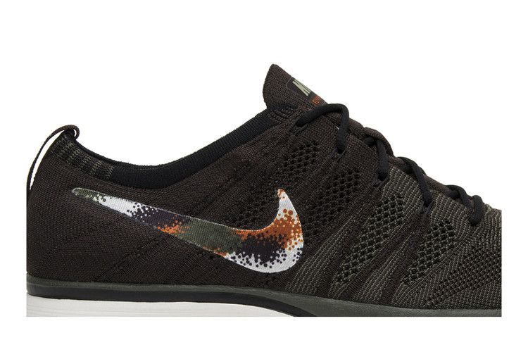 The Nike Flyknit Trainer Neutral Olive has a seamless Flyknit upper in neutral olive, velvet brown, and sail. The low-top design includes tonal Flywire mesh with black, white, and red...