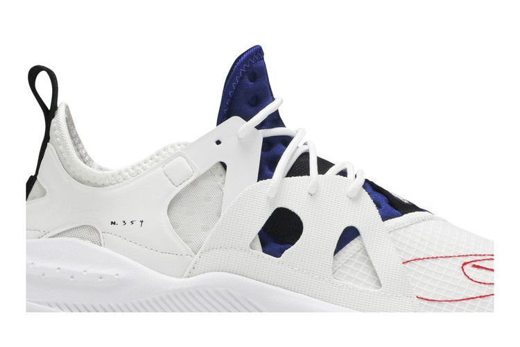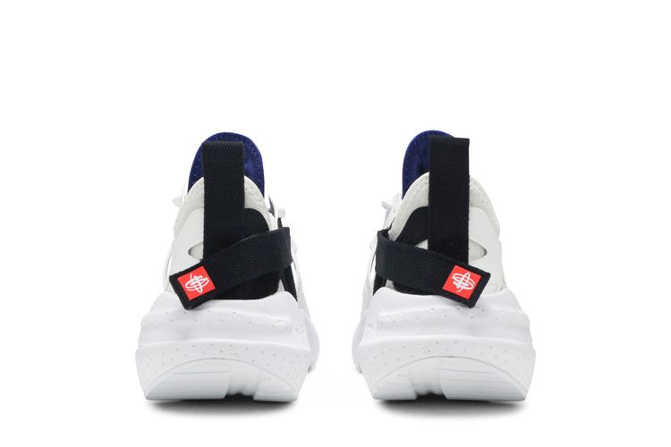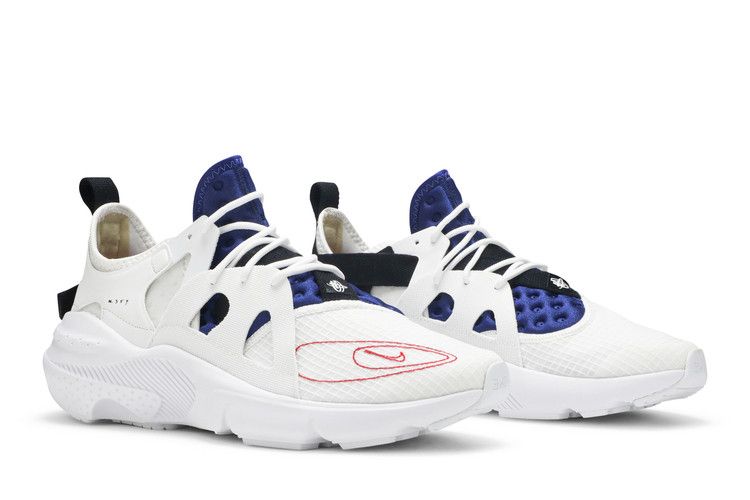 The Nike Huarache Type USA features a Summit White mesh and fabric upper with a Deep Royal Blue tongue. The design includes a University Red embroidered Swoosh within two concentric...