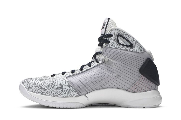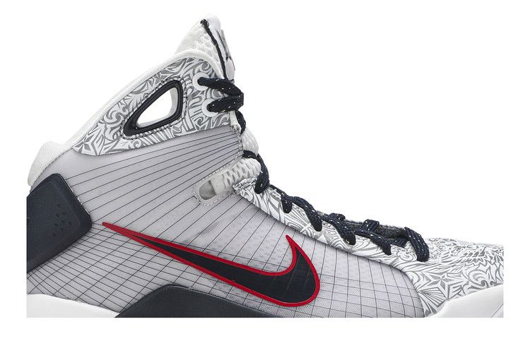 The Nike Hyperdunk 08 United We Rise 2016 relaunches the 2008 original, commemorating the USA men's basketball team's Olympic gold medal. The 2016 edition features a white upper with Sport Red and Dark Obsidian accents, an American flag graphic on the heel, and "United We Rise" printed on the insole. The mesh upper provides breathability and support, with a textured pattern for enhanced ventilation. Released on July 23, 2016, the Nike Hyperdunk 08 United We Rise 2016 is available now at Side Kicks.
