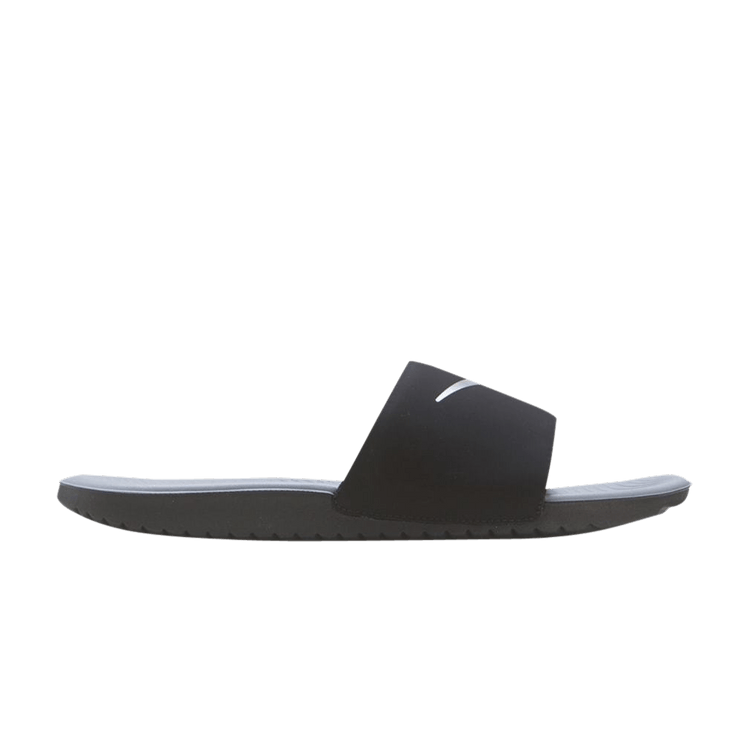 The Nike Kawa Slide Black Metallic Silver (GS/PS) is now available at Side Kicks!