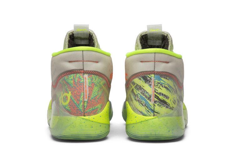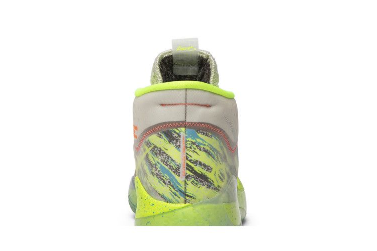 The Nike KD 12 90s Kid combines metallic silver, yellow, and white in a vibrant colorway inspired by Kevin Durant's childhood. The mesh upper features graffiti-inspired detailing on the heel,...
