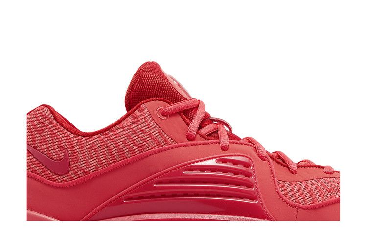 The Nike KD 16 Ember Glow features a multi-layered textured mesh upper with synthetic mudguards for durability. Its 3M reflective upper and translucent outsole reveal the shoe's internal mechanics. The...