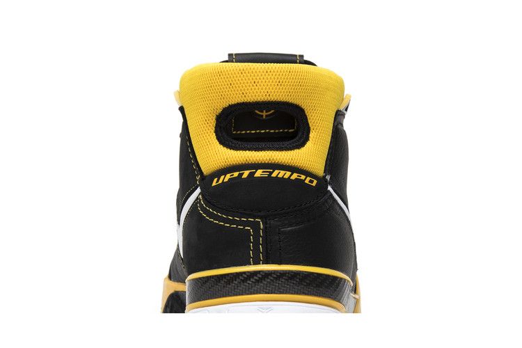 The Nike Kobe 1 Protro Black Maize features a Black/White-Varsity Maize colorway and includes a 2018 LA Hang Tag. The upper combines 4K computer-knit fabric with a non-woven internal eyestay and welded TPU reinforcement. Designed for both casual wear and performance, it maintains the legacy of Kobe Bryant's original model. Released on August 24, 2018, the Nike Kobe 1 Protro Black Maize is available now at Side Kicks.