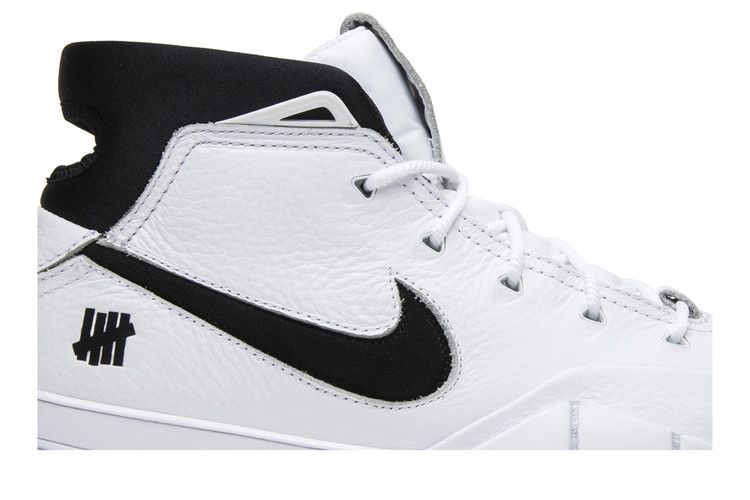 The Nike Kobe 1 Protro Undefeated White features a patent leather and textile upper with embossed Undefeated branding on the heel tab. It includes Zoom Air cushioning in the midsole...