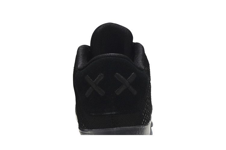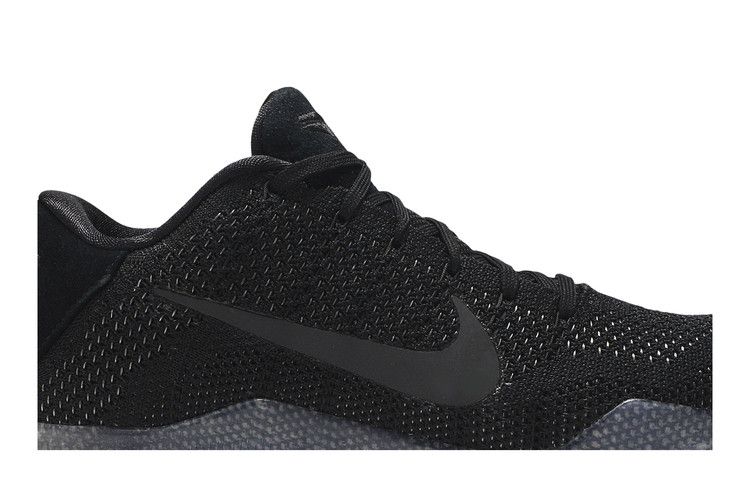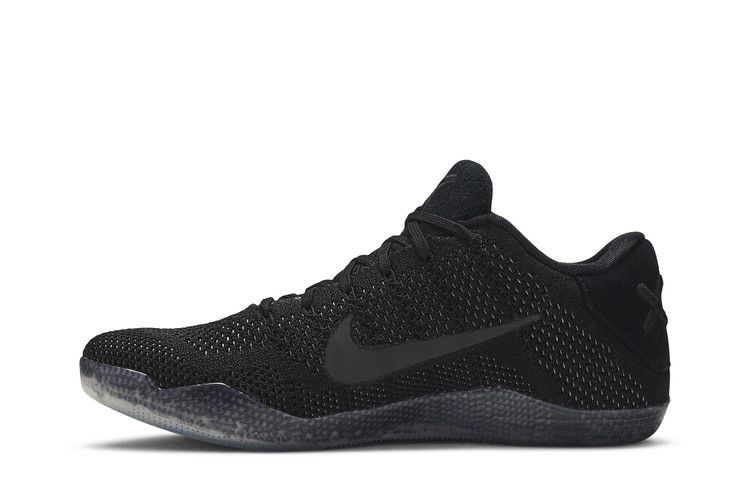 The Nike Kobe 11 Elite Low Black Space features a low-top design with an all-black Flyknit upper for lightweight breathability. Reflective black Swoosh branding and suede panels on the tongue...