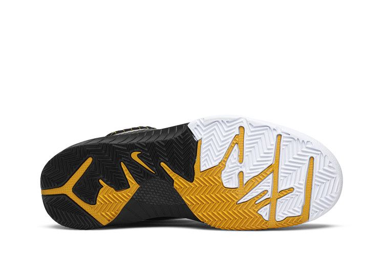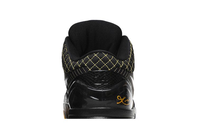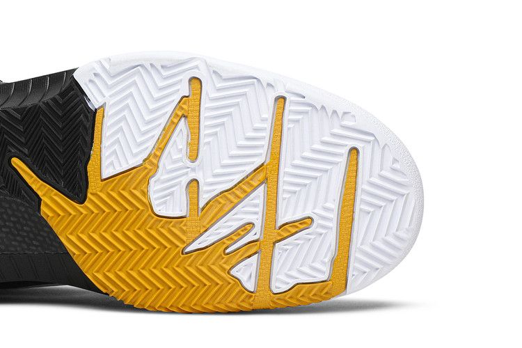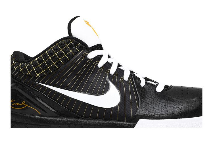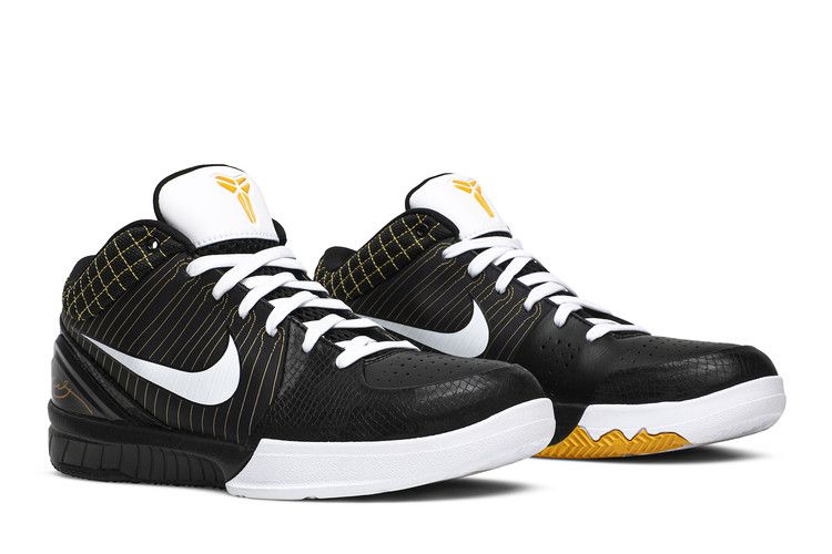 The Kobe 4 Protro White Black Del Sol features a white upper with black and yellow accents. It includes a black Nike Swoosh outlined in yellow, a white midsole with black details, and a black outsole. Released on May 2019, the Kobe 4 Protro White Black Del Sol is available now at Side Kicks.
