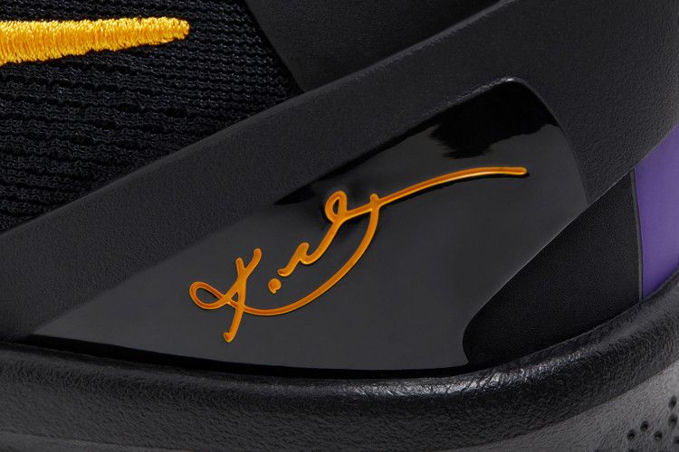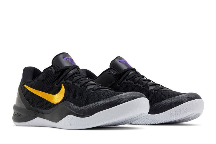 The Nike Kobe 8 Protro Lakers Away features a black engineered knit upper with gold embroidered Swooshes and Kobe Bryant’s signature on the heel. The white outsole contrasts the black...