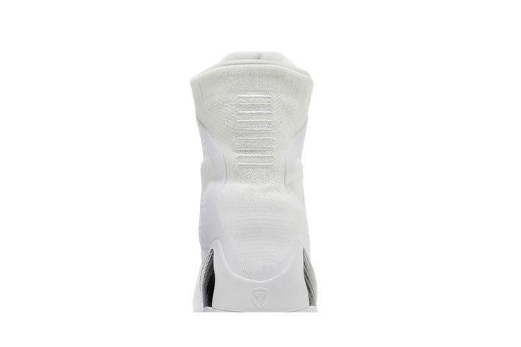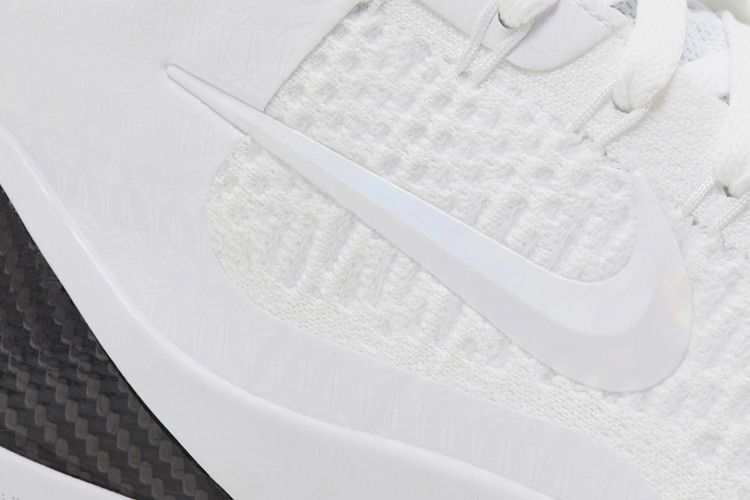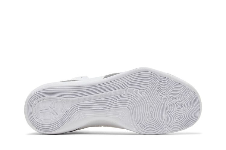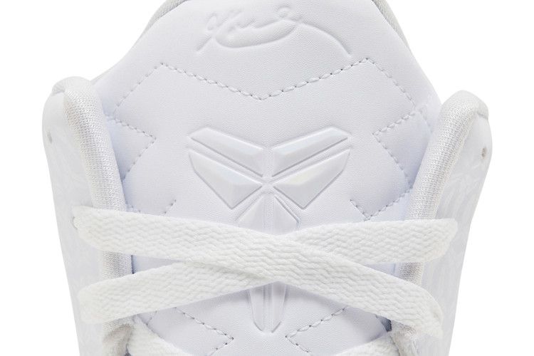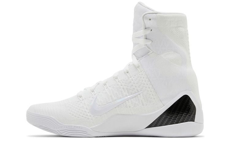 The Nike Kobe 9 Elite Low Protro Halo features an all-white Flyknit upper for breathability and lockdown support. React Foam in the midsole delivers responsive cushioning, while the rubber outsole enhances traction. Black accents on the extended midsole contrast the angelic colorway, complemented by iridescent Swoosh detailing.