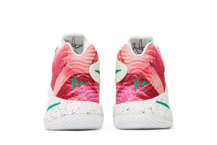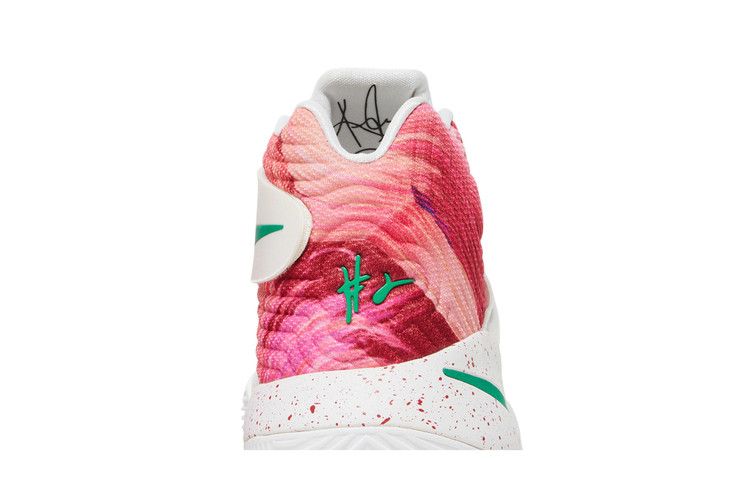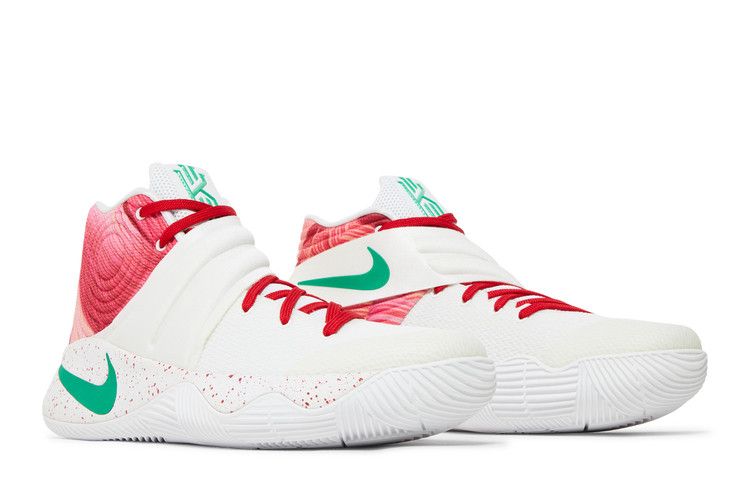The Nike Kyrie 2 Ky-Rispy Kreme (Special Box Version 2) (Not Windowed) features a red and white colorway with green accents. The upper combines lightweight mesh with a glossy red...