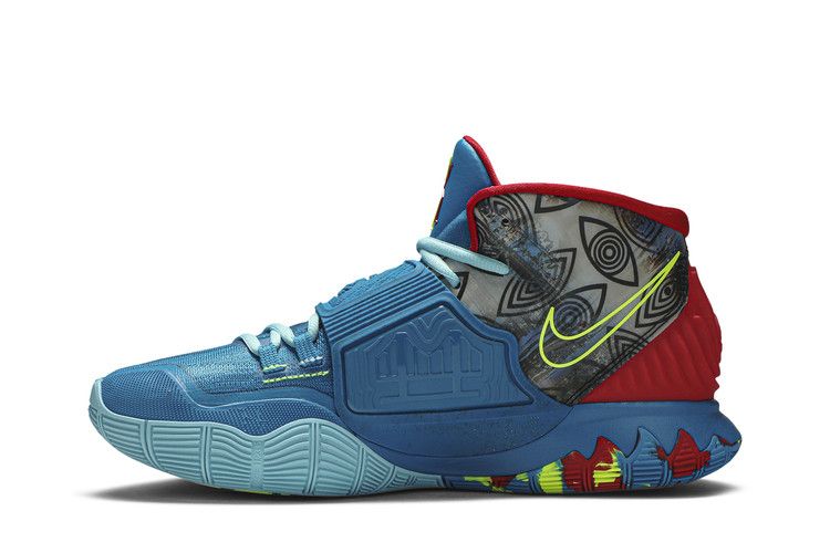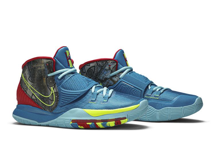 The Nike Kyrie 6 Preheat Collection New York City features a breathable mesh and synthetic upper for durability. Its Zoom Air midsole delivers responsive cushioning, while the multi-directional traction outsole ensures superior court grip. The design showcases bold orange, blue, and green hues inspired by New York City. Released on November 11, 2019, the Nike Kyrie 6 Preheat Collection New York City is available now at Side Kicks.