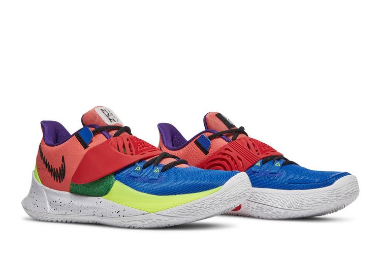 The Nike Kyrie Low 3 NY vs. NY honors New York’s legendary summer basketball tournaments with a Magic Ember, White, and Black colorway. Designed for quick outdoor play, it features a snug fit and responsive cushioning. The low-top silhouette reflects Kyrie Irving’s roots in streetball culture. Released on September 10, 2020, the Nike Kyrie Low 3 NY vs. NY is available now at Side Kicks.