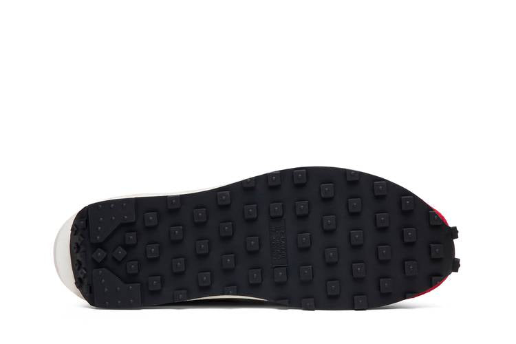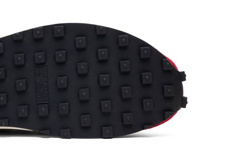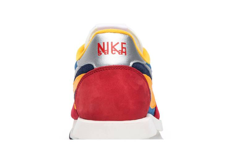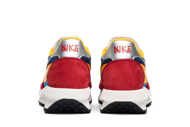 The Nike LD Waffle Sacai Varsity Blue is a collaboration between Sacai and Nike, debuted at the Sacai SP19 runway show during Paris Fashion Week. This unique shoe combines elements from two archival Nike runners, the Waffle Daybreak and LDV, resulting in a double Swoosh, tongue, heel counter, eyestay, and laces. The upper features a mix of suede, leather, and mesh in blue and red tones, complemented by a sculpted midsole extending past the heel. The waffle outsole provides traction, while branding from Nike and Sacai is visible on the back heel and insole.