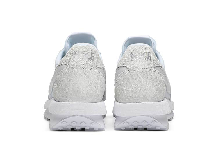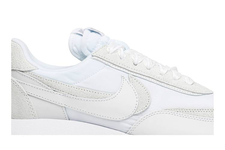 The Nike LD Waffle Sacai White Nylon is a collaborative sneaker featuring a white nylon upper with leather and suede overlays. Inspired by the Nike LDV and Waffle Racer, this hybrid silhouette boasts a double-layered Swoosh, laces, and tongue for a unique look. The elongated midsole adds to the shoe's overall aesthetic. Originally released in March 2020, this sneaker is a must-have for collectors and fans of the Sacai x Nike collaboration.
