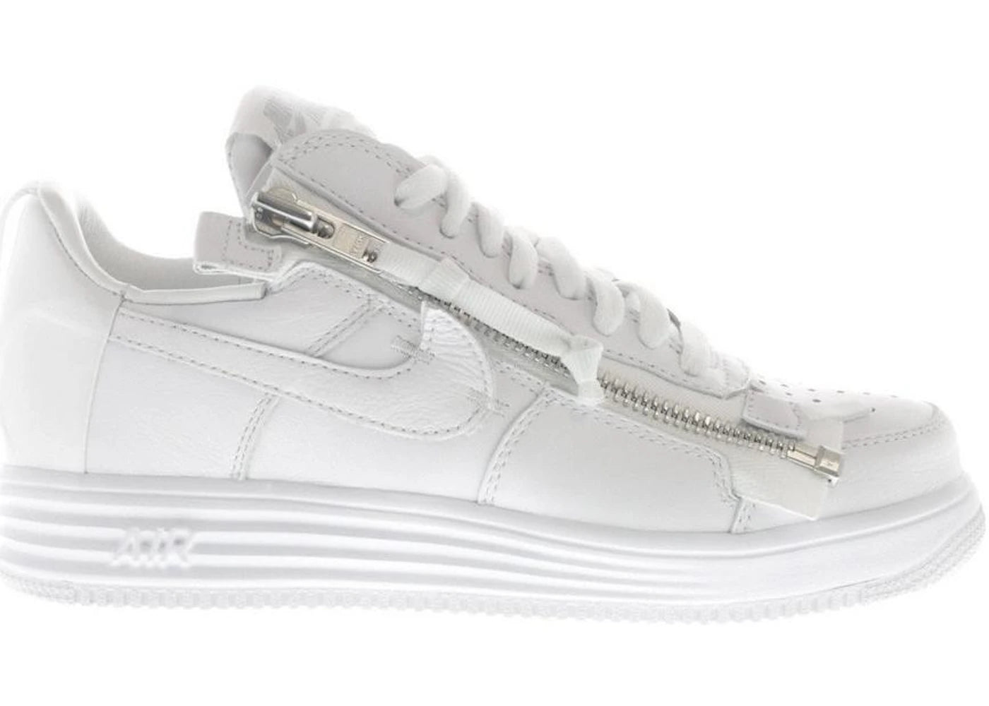 The Nike Lunar Force 1 Low Acronym (AF100) features a white synthetic leather upper with a functional side zip and dual Swooshes for a distinctive look. Perforations at the toe...