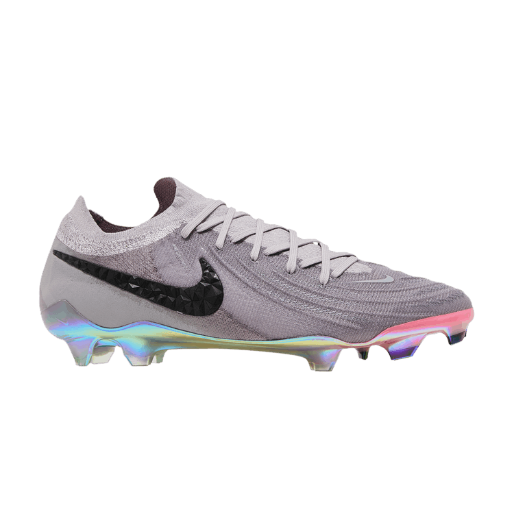 The Nike Phantom GX 2 Elite AS FG Low Rising Gem Pack is a low-top soccer cleat designed for soft ground surfaces. The upper features an Atmosphere Grey finish with...