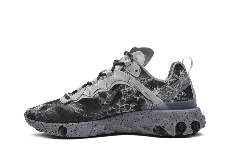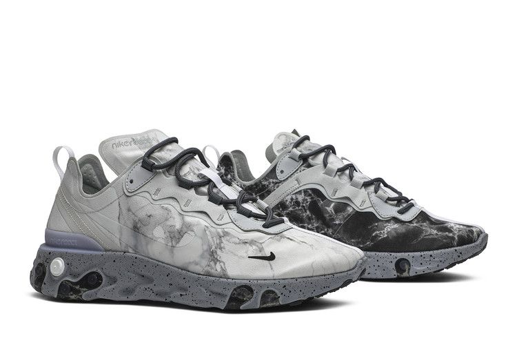 The Nike React Element 55 Kendrick Lamar features a split marble graphic on the upper, inspired by yin and yang and referencing the artist's alter-ego Kung Fu Kenny. It includes a speckled React cushioned sole for comfort. Released on November 2019, the Nike React Element 55 Kendrick Lamar is available now at Side Kicks.
