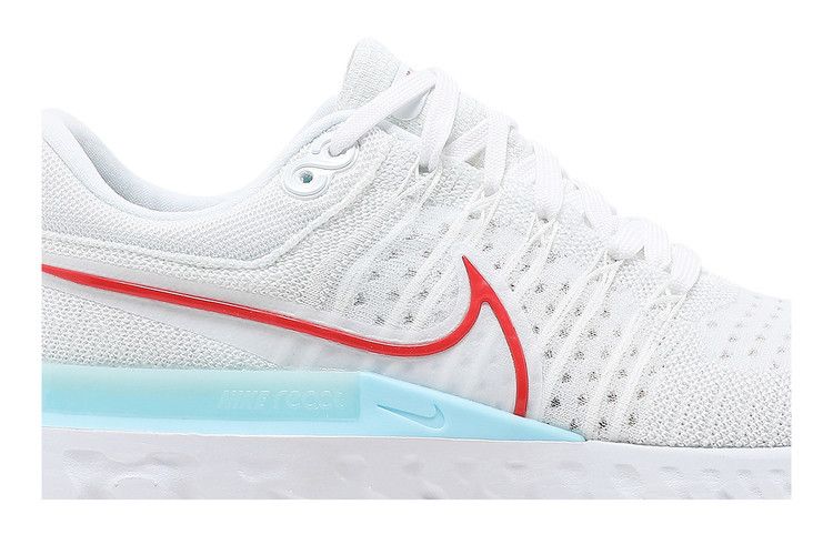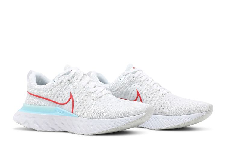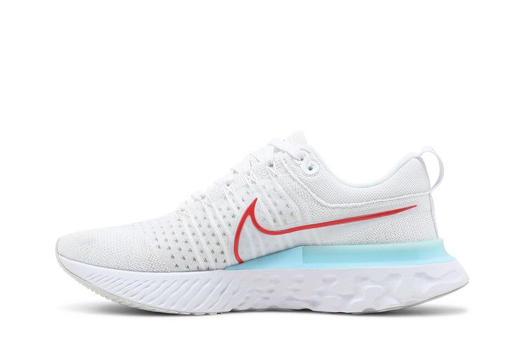 The Nike React Infinity Run Flyknit 2 White Glacier features a white Flyknit upper with Chile Red and Glacier Ice accents. It includes React foam in the midsole for stability,...