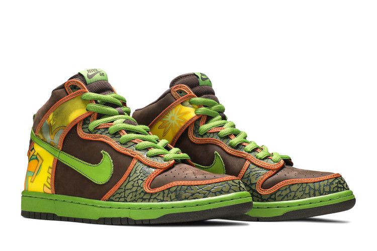 The Nike SB Dunk Low De La Soul 2015 draws inspiration from the *3 Feet High and Rising* album cover, reimagining the 2005 colorway in a low-top silhouette. The upper...