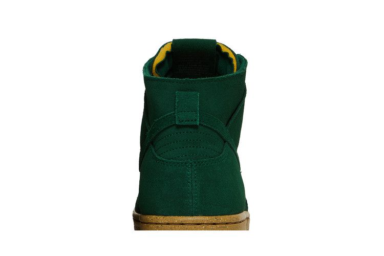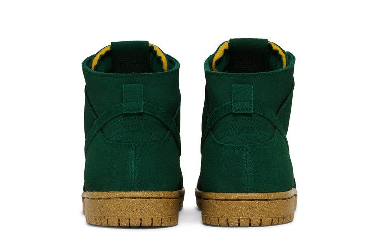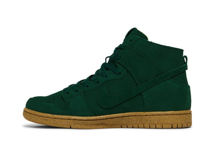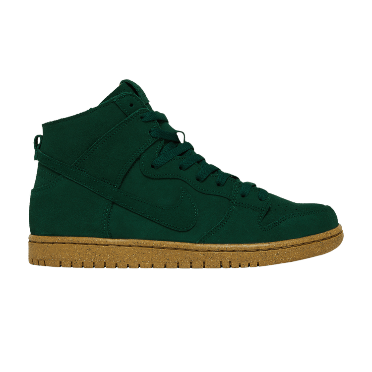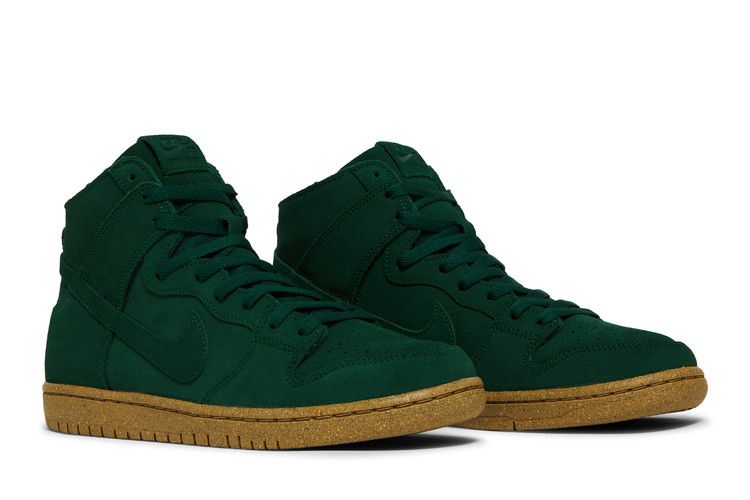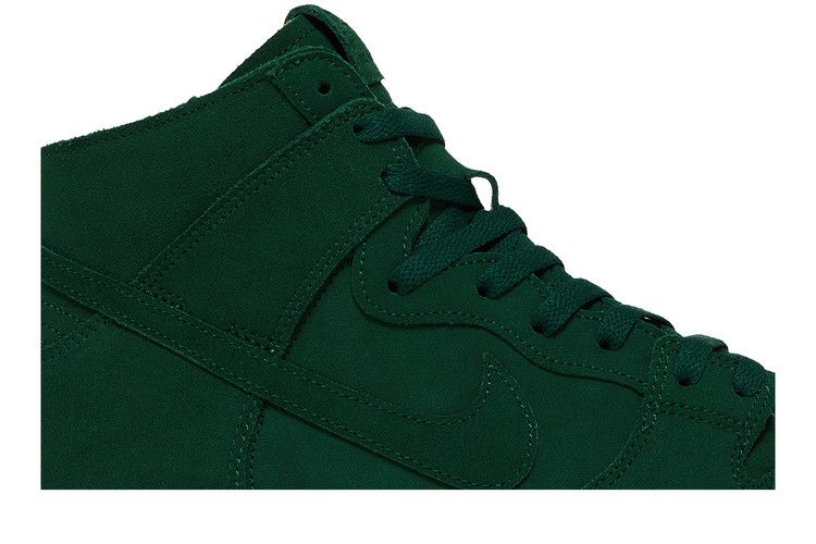 The Nike SB Dunk High Decon Gorge Green features a monochrome green suede upper with a matching gum sole for traction. It has reduced ankle padding, an exposed foam tongue, and a slim design for improved boardfeel. The shoe includes Zoom Air cushioning in the heel and a grippy outsole. Released on November 28, 2022, the Nike SB Dunk High Decon Gorge Green is available now at Side Kicks.