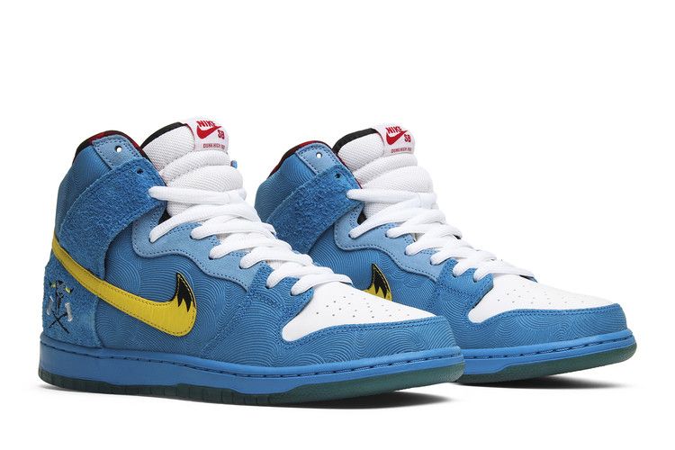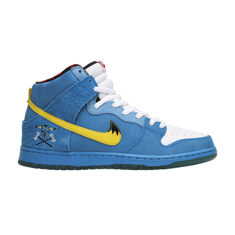 The Nike Dunk SB High Familia Blue Ox features a blue and white colorway with a premium leather upper and durable rubber outsole. Designed for casual wear, it offers versatility for various outfits. Released on July 4, 2015, the Nike Dunk SB High Familia Blue Ox is available now at Side Kicks.