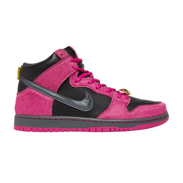 The Nike SB Dunk High Run The Jewels features an active pink and black color palette. Its upper is made from vibrant pink suede with contrasting black overlays. A cushioned...