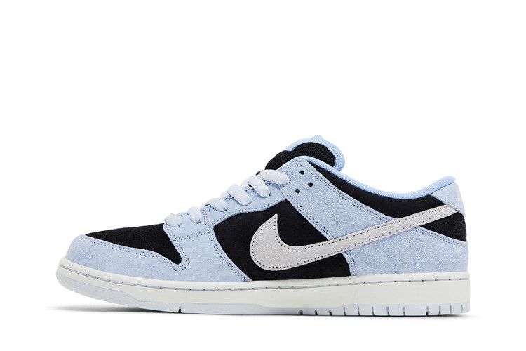 The Nike SB Dunk Low Black Aluminum is a low-top skate shoe constructed with premium suede. It features a black suede base with Aluminum blue suede overlays on the eyestays,...