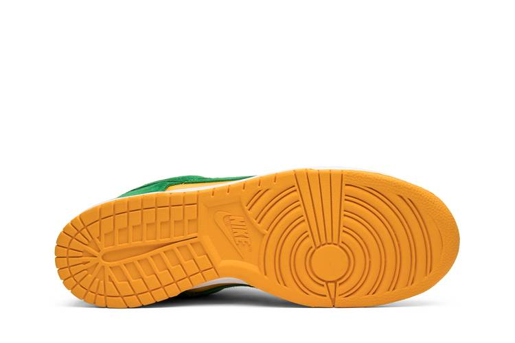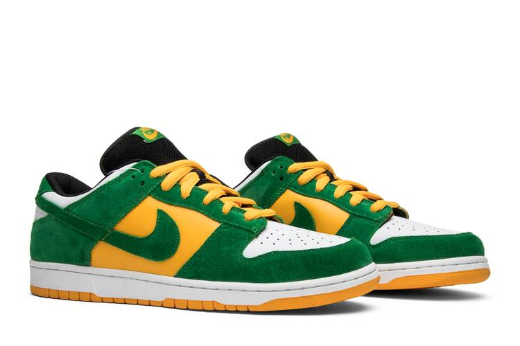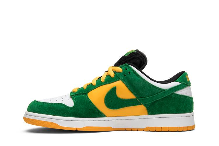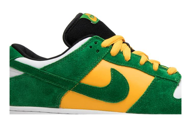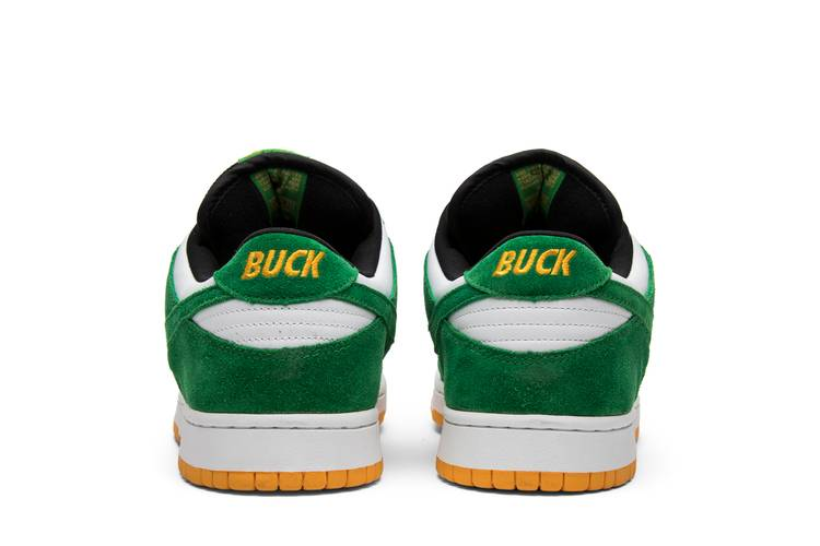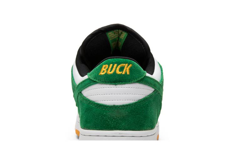 The Nike SB Dunk Low Bucks features a green and yellow colorway inspired by the University of Oregon, where Nike co-founder Phil Knight attended. The shoe includes an embroidered 'Buck'...
