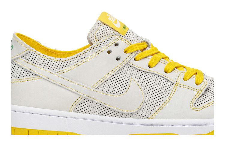 The Nike SB Dunk Low Decon Ishod Wair Aloe Verde Tour Yellow has a deconstructed suede upper in an aloe verde colorway with tour yellow accents on the Swoosh, laces,...