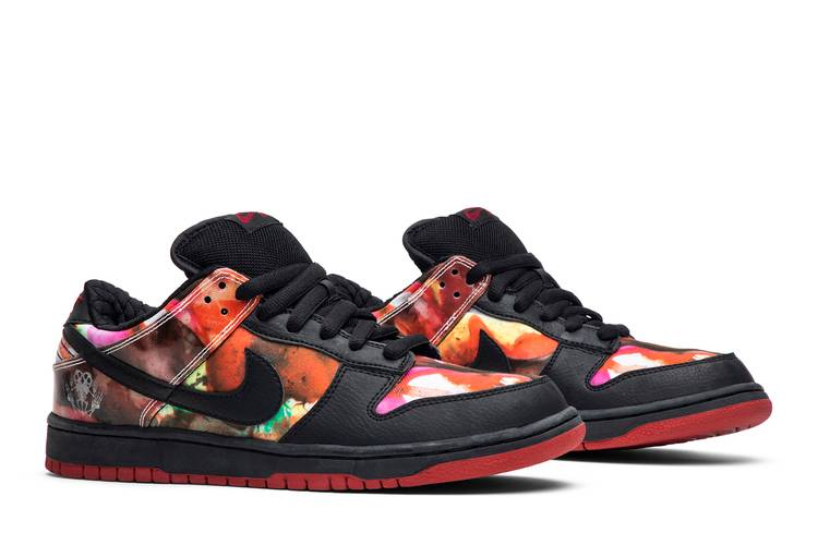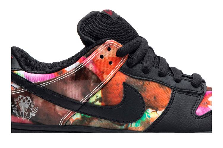 The Nike SB Dunk Low Pushead 1 showcases a distinctive design created by artist Pushead, renowned for Metallica album covers and Thrasher tees. The shoe features a unique paint splatter...
