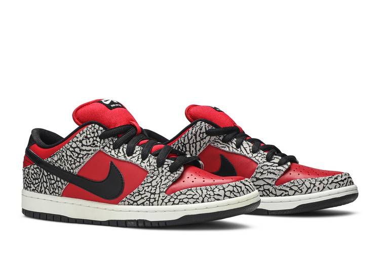 The Nike SB Dunk Low Supreme Red Cement (2012) was released in July 2012 as a collaboration between Nike SB and Supreme. Featuring the iconic elephant print design in Cement...