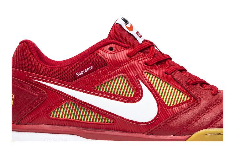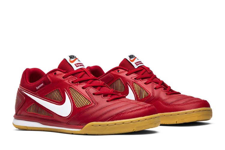 The Supreme Nike SB Gatos feature a black calfskin leather upper with lenticular side panels and red accents. The design includes "Supreme" branding throughout, a cushlon midsole, and a full...