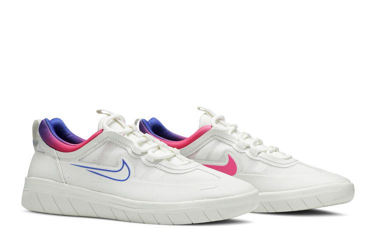 The Nike SB Nyjah Free 2 Summit White Pink Blast Racer Blue features a low-top design inspired by Nyjah Huston. Its 360-degree rubber upper includes breathable mesh panels for enhanced...