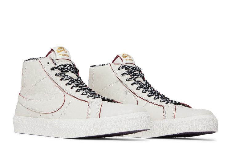 The Nike SB Zoom Blazer Mid QS Welcome Skateboarding features a mid-top silhouette designed for skateboarding. It combines a sail leather upper with star-shaped perforations and sawtooth eyestays. The heel...