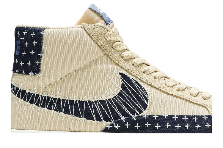 The Nike SB Zoom Blazer Mid Sashiko Sesame is part of the "Sashiko Pack," featuring traditional Japanese reinforcement stitching for decoration. The upper combines sesame-colored khaki canvas with tonal suede...