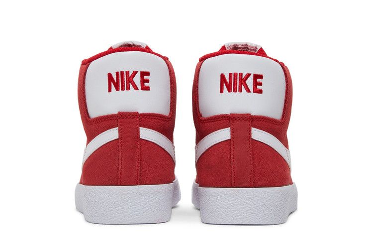 The Nike SB Zoom Blazer Mid Kevin and Hell features a University Red and Black colorway inspired by Darth Maul from Star Wars. The upper combines red velour with a black velour Swoosh, paired with cotton laces and a nylon tongue. A vulcanized rubber outsole ensures grip for skateboarding.