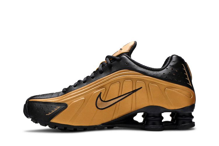 The Nike Shox R4 Metallic Gold Black is now available at Side Kicks!