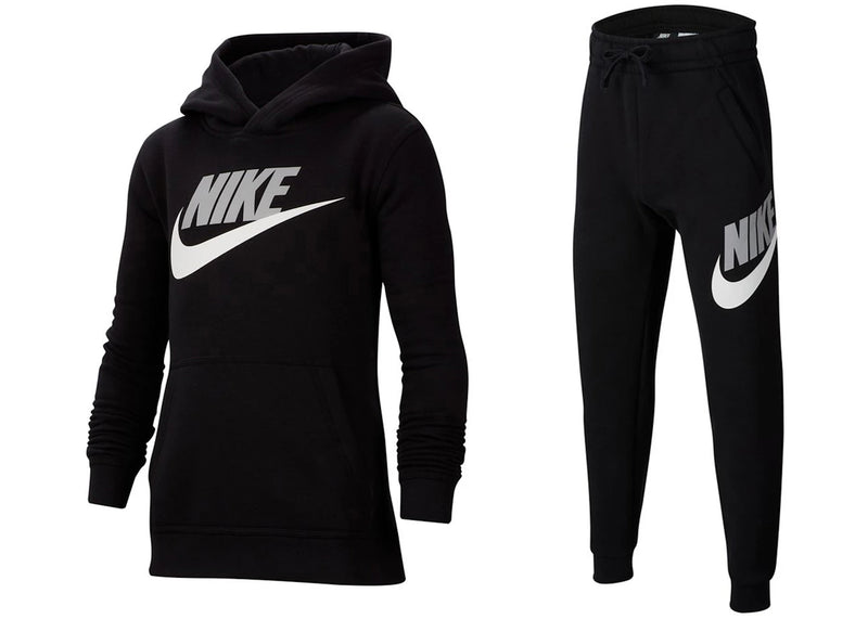 The Nike Sportswear Club Fleece Pullover Hoodie & Pants Set Black/Light Smoke Grey is now available at Side Kicks!