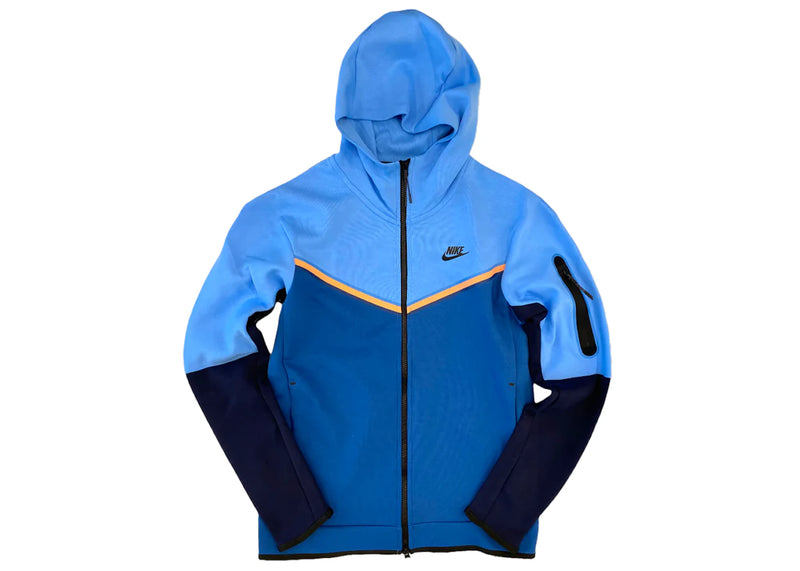 The Nike Sportswear Tech Fleece Full-Zip Hoodie Blue Navy Orange is now available at Side Kicks!