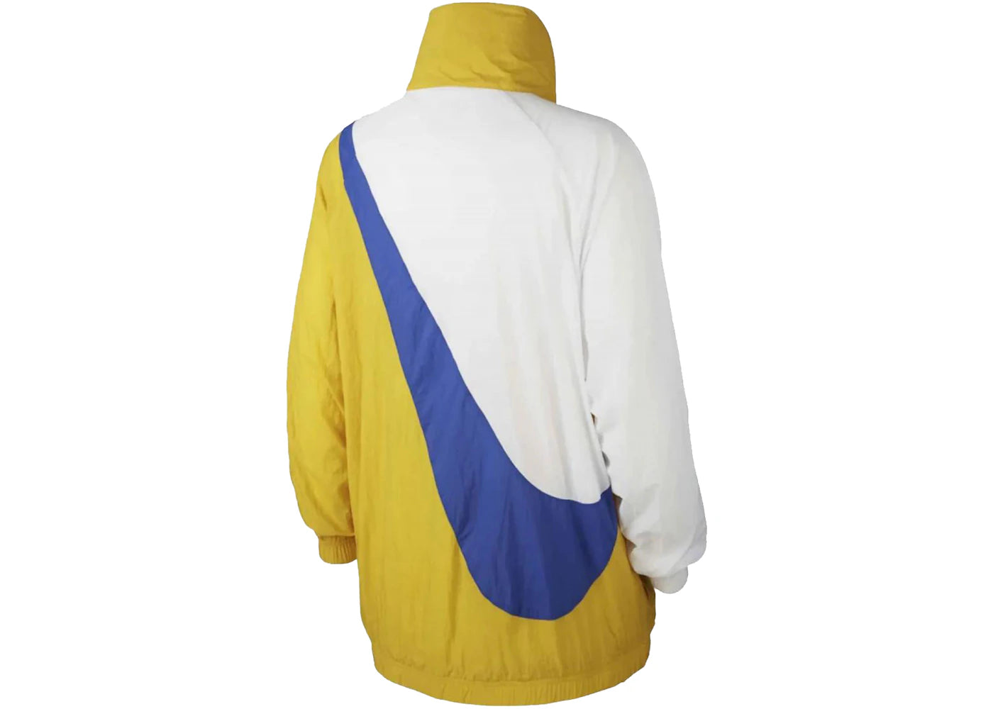 The Nike Sportswear Woven Swoosh Jacket White/Blue/Yellow is now available at Side Kicks!