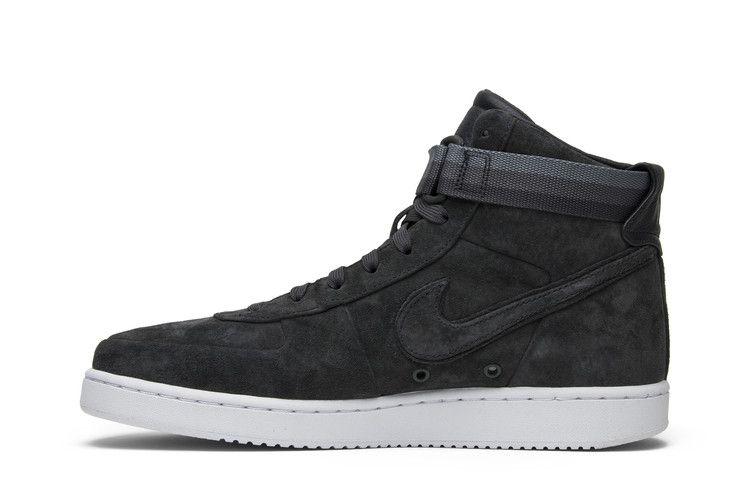 The Nike Vandal High John Elliott Anthracite debuted in 1984 before receiving a premium redesign in 2017. The updated version features an anthracite nubuck suede upper, full leather interior, and refined panel piping. Designer John Elliott incorporated three interchangeable stability straps for customizable wear. Released on June 22, 2017, the Nike Vandal High John Elliott Anthracite is available now at Side Kicks.