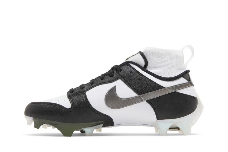 The Nike Vapor Edge Dunk Panda features a black and white color scheme with perforated detailing on the toebox and a silver Swoosh across the side panels. The lightweight, breathable upper enhances airflow, while the midsole provides responsive cushioning. The soleplate includes multidirectional studs for superior traction. Released on February 9, 2023, the Nike Vapor Edge Dunk Panda is available now at Side Kicks.