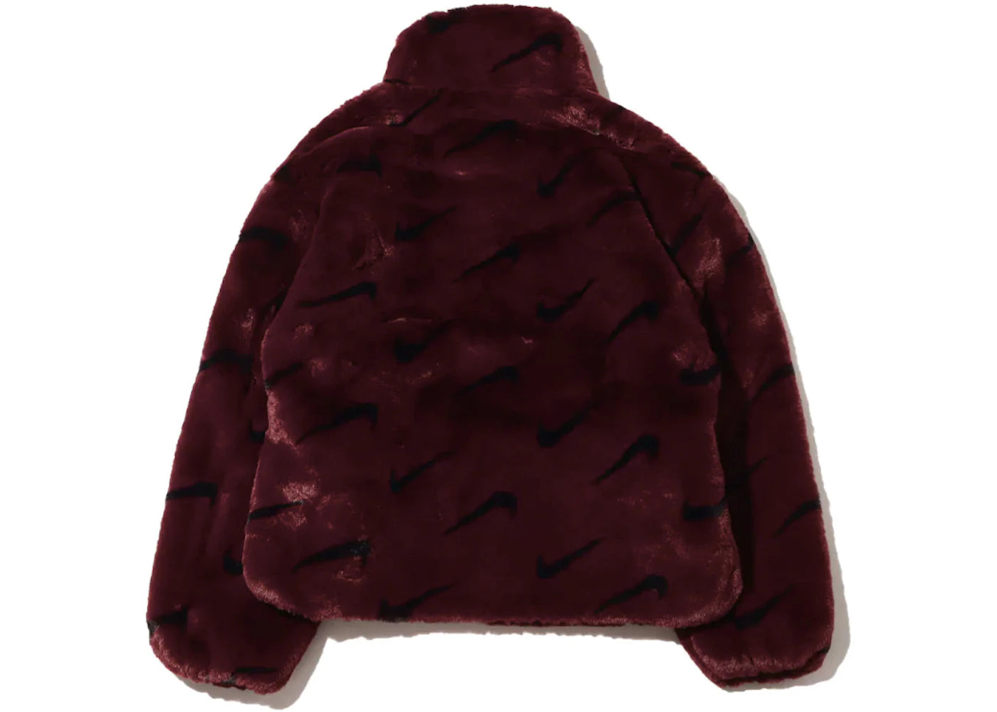 The Nike Women's Printed Faux Fur Jacket (Asia Sizing) Burgundy Crush is now available at Side Kicks!