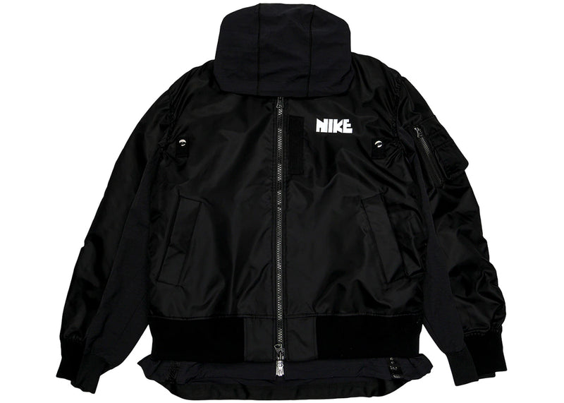 The Nike x Sacai Layered Bomber Jacket Black is now available at Side Kicks!