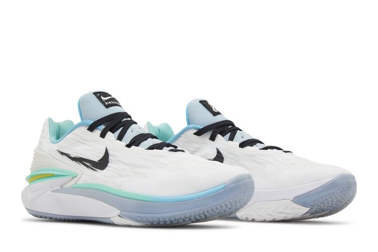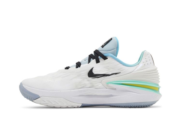 The Nike Zoom GT Cut 2 Light Menta Opti Yellow features a lightweight white mesh upper with a streaked horizontal pattern. A black Swoosh and flat laces contrast the perforated...