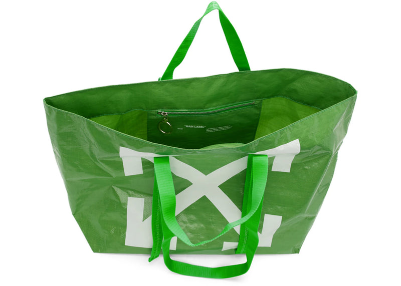The OFF-WHITE Arrows Tote Bag Green White is now available at Side Kicks!